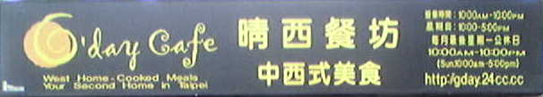G'day Cafe 晴西餐廳 台北市興安街180號 No.180. Hsing An St. Taipei TEL:(02)27175927 營業時間:Am10:00-Pm10:00