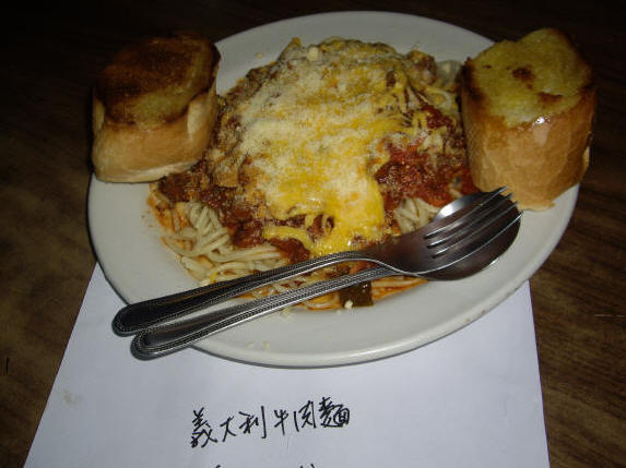義大利牛肉肉醬麵 (附大蒜麵包) Spaghetti w/Garlic Bread