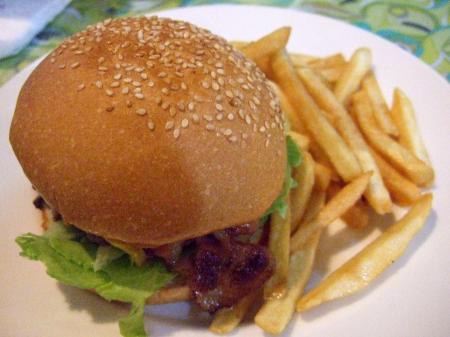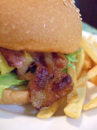 大起司培根牛肉漢堡。朋友點的餐點,點漢堡類才會有薯條。看起來份量很不錯,朋友覺得滿好吃的,不過肉是屬於比較生的那一種,咬下去還會有肉汁流出來噢!